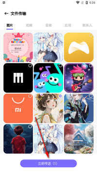 软件支持用户选中本地的图片、视频、文档等文件,通过一键操作传送到其他设备。