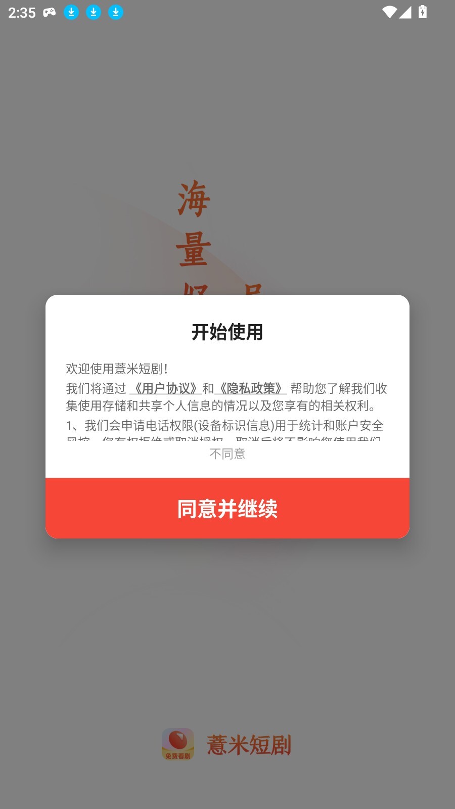 在本站软件并成功打开进入,点击同意并继续