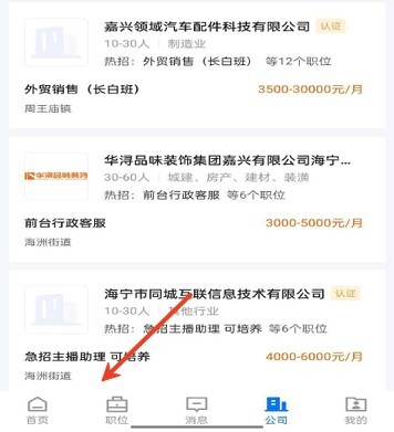 用户能够进入首页,接着点击页面底部的“职位”按钮。