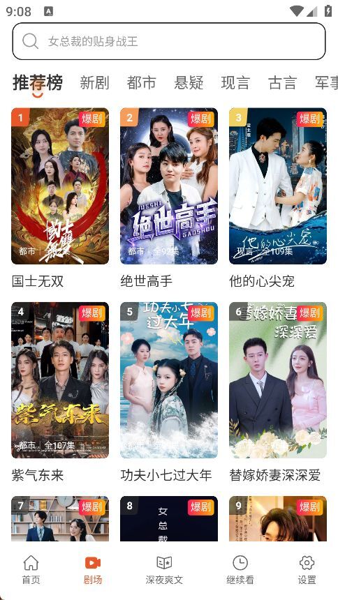 1. 多种热门类型的短剧,带有热门爆款标识,可一键直达热门内容