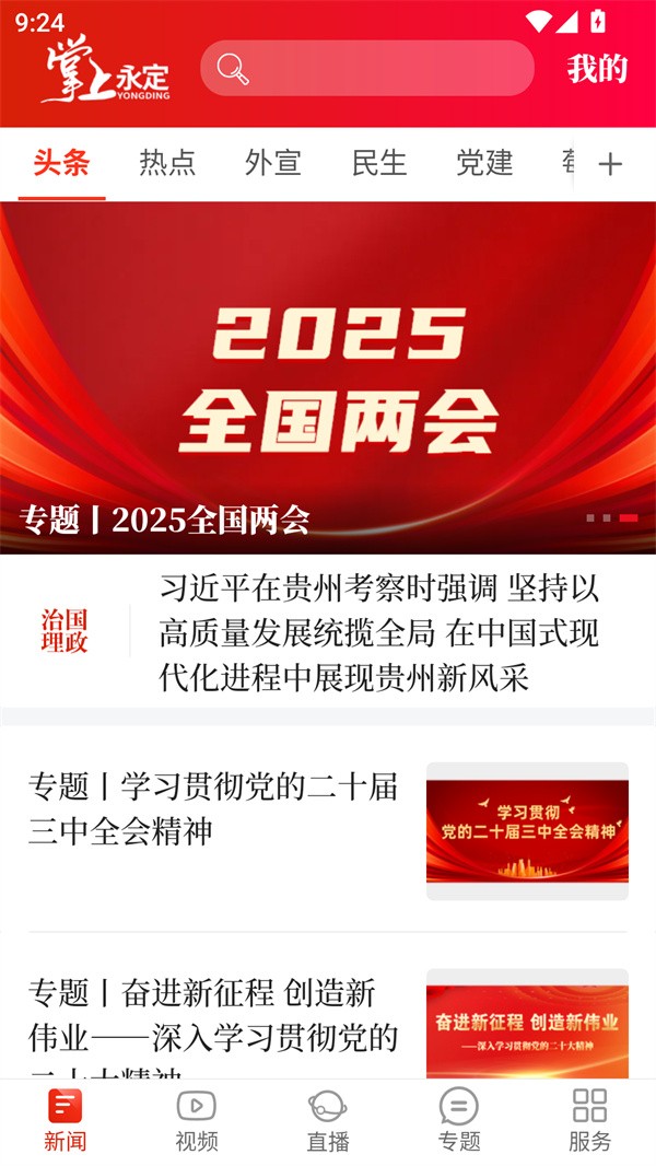 1、接着安装掌上永定安卓版,待安装完毕后打开应用,进入其主界面。