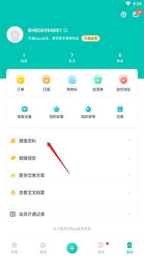 1、点击界面底端的“我的”选项,接着选择“健康资料”选项。