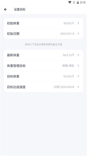 3、根据自身的需求改变目标体重等信息。