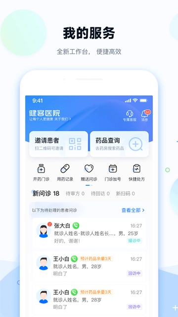 2、助力医生多点执业:为专业医生搭建灵活的线上执业平台,突破地域与时间的约束,助力医生扩大服务半径,使优质医疗资源惠及更多患者。