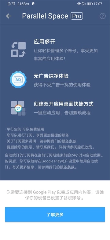 请注意:若要通过创建快捷方式实现Parallel Space的双开功能,需先开通其Pro版(专业版)。