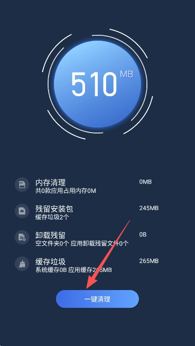 2、接下来就会为您扫描垃圾文件,占用的内存也会立即进行清理