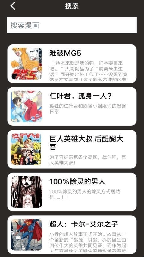 4、配备强大的搜索系统,输入关键词就能迅速定位热门漫画,丰富的正版图书资源可供随意阅读,轻松获取精彩内容无门槛限制。