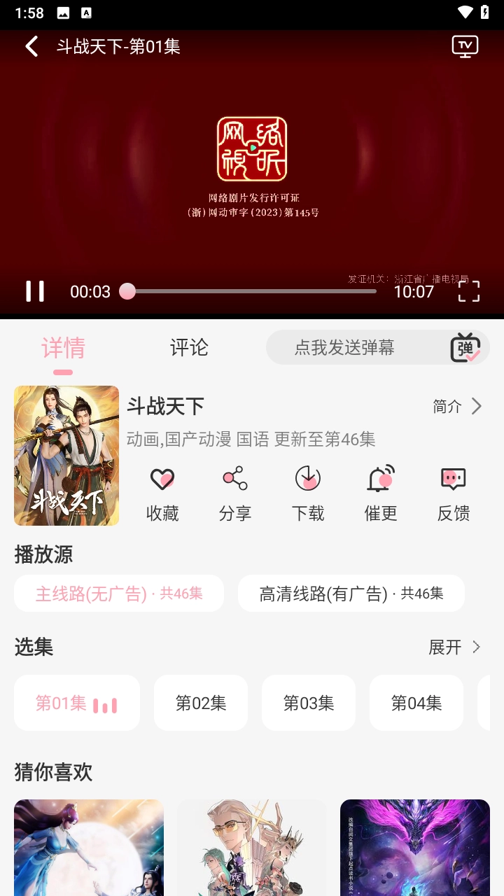 3、然后随意挑选一部动漫,这里小编拿“斗战天下”来举例,点击就能播放。