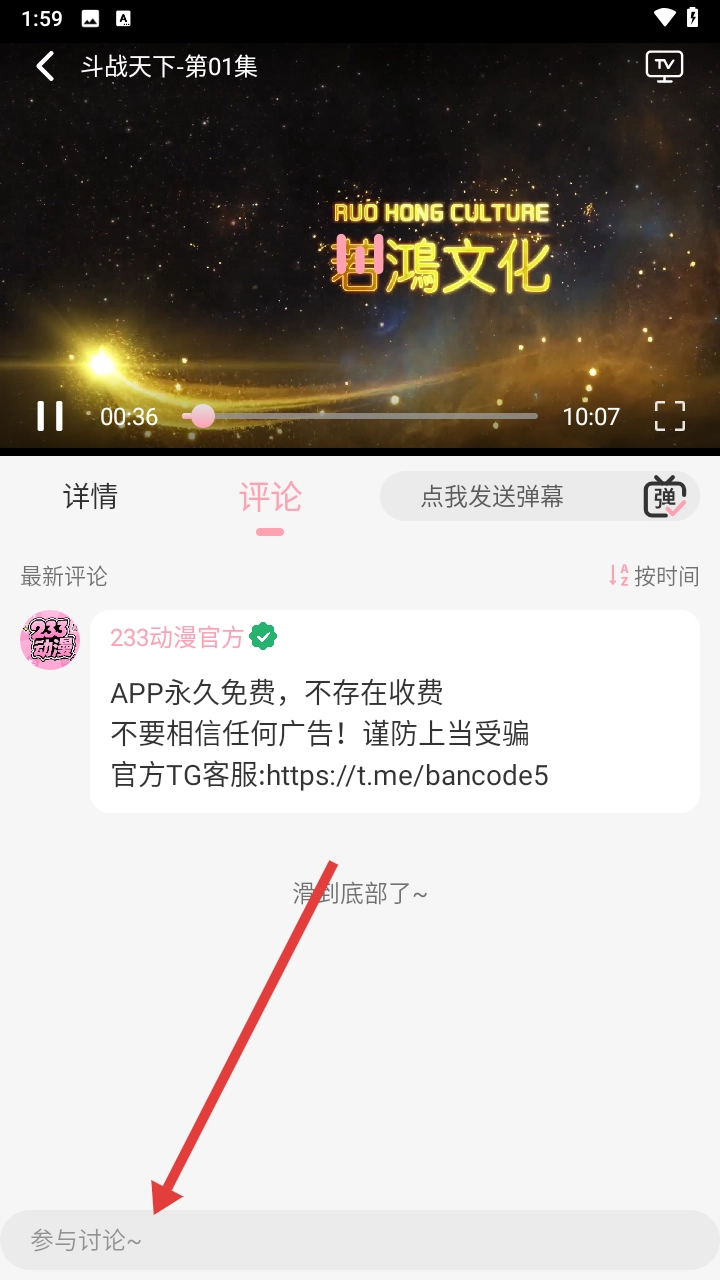 4、播放界面,可以直接参与最新的评论内容。