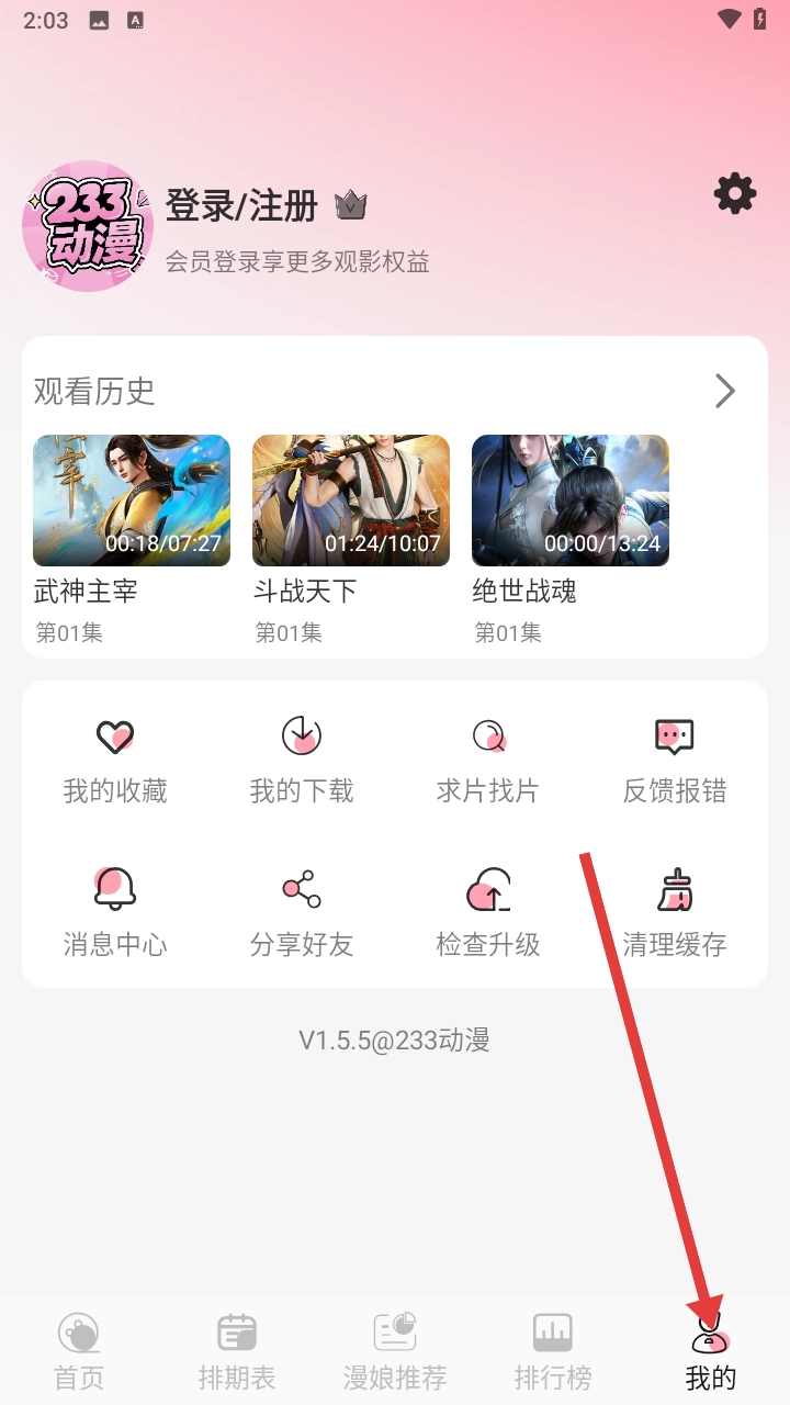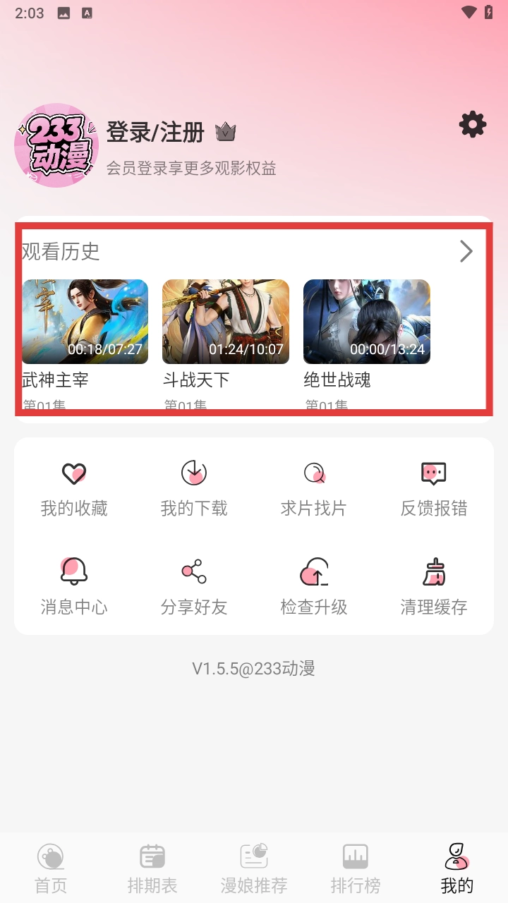 233动漫怎么查看最近的历史播放记录