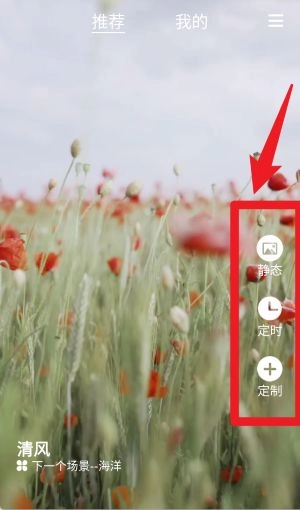 3、点击右侧的静态、定时、定制按钮,即可开启背景静态图、设置播放定时器,或是进入专属音景定制页面。