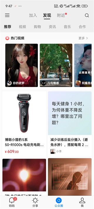 发现:热门影像带你体验多彩生活,深度资讯助你聚焦全球动态,知识板块与讨论区邀你探索未知领域,还有购物、音频、职业等多元内容板块,随时为你开启新奇多样的发现之旅。
