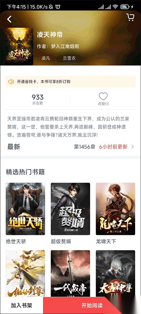 1、首先挑选一本我们爱看的小说,并进入书籍界面。