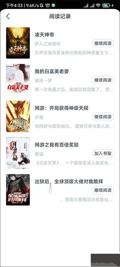 2、在个人页面的菜单中找到阅读记录,轻触它。