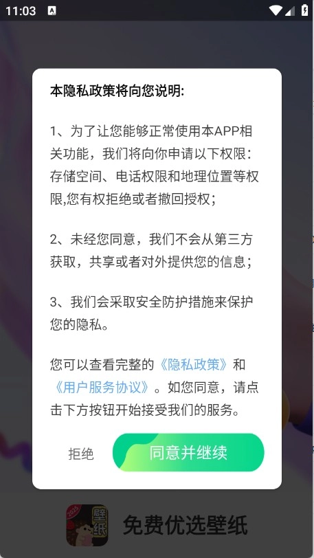 1、首先在本站免费优选壁纸,完成安装后打开软件,同意隐私政策与用户协议。