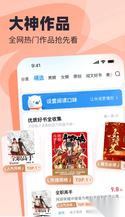 3、找书轻松便捷,专业编辑团队为你用心筛选,各类榜单、热门佳作与精品书籍汇聚优质读物,让你沉浸其中、阅读不停