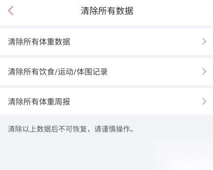 3、在这里可以清除所有体重数据、所有饮食/运动、体围记录和清除所有体重周报。