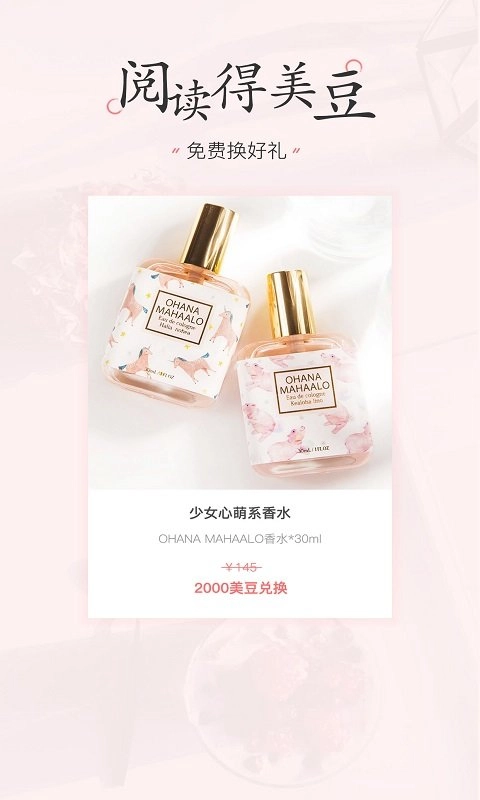 1、阅读送美豆,免费换好礼。