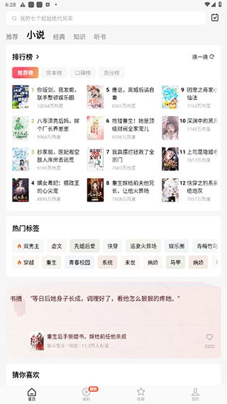 2、小说内容分为男频、女频,根据排行榜、标签、小说分类等可快速找到想看的小说。