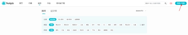 1、进入画加的,选择画师,点击右上角的注册进行注册。