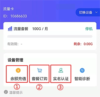 点击设备使用自己的手机号登录,然后绑定流量卡
