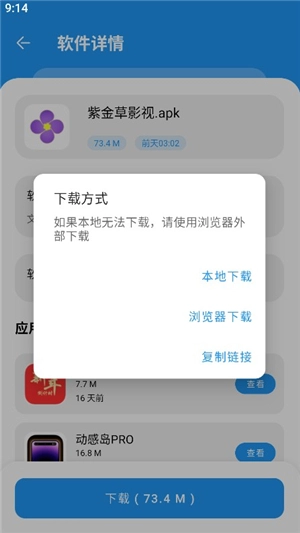 4、点击,用户可选本地、浏览器和复制链接。