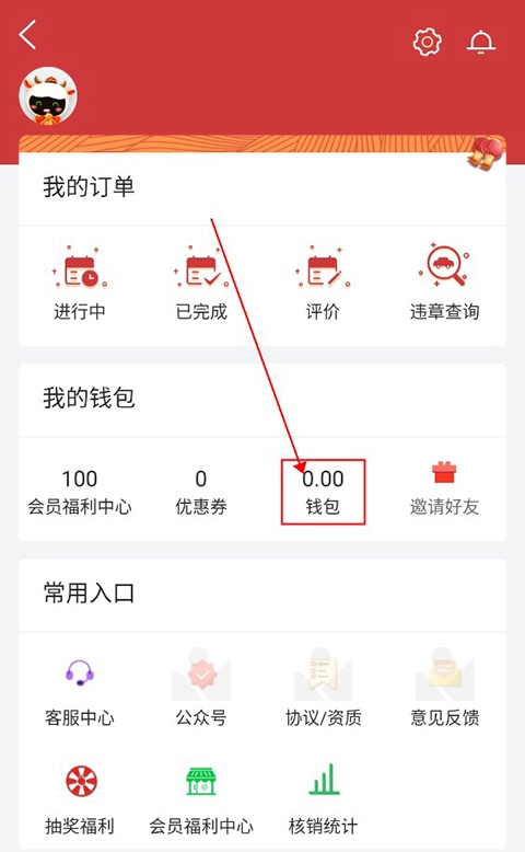 进入个人中心后,点击中间的钱包,进入钱包页面。