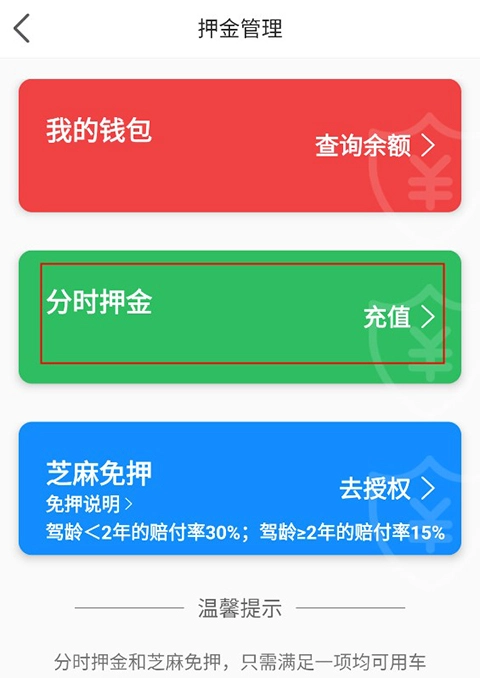 之后就可以点击分时押金,进入押金界面。