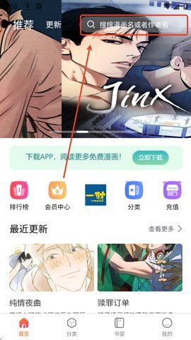 打开应用后,点击首页右上方的搜索框,输入漫画名称,就能完成搜索操作。