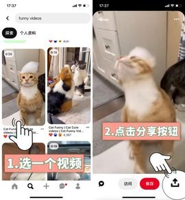 先打开pinterest选择一个你喜欢的视频,点击【分享】按钮