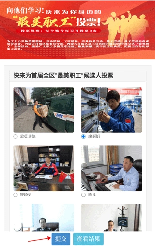 2、进入投票界面后,挑选其中一位候选人,点击页面下方的“提交”按钮,就能完成投票操作。