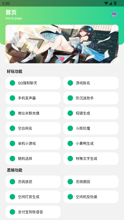 1.启动酷盒MINI,软件了不少有趣功能和整蛊功能
