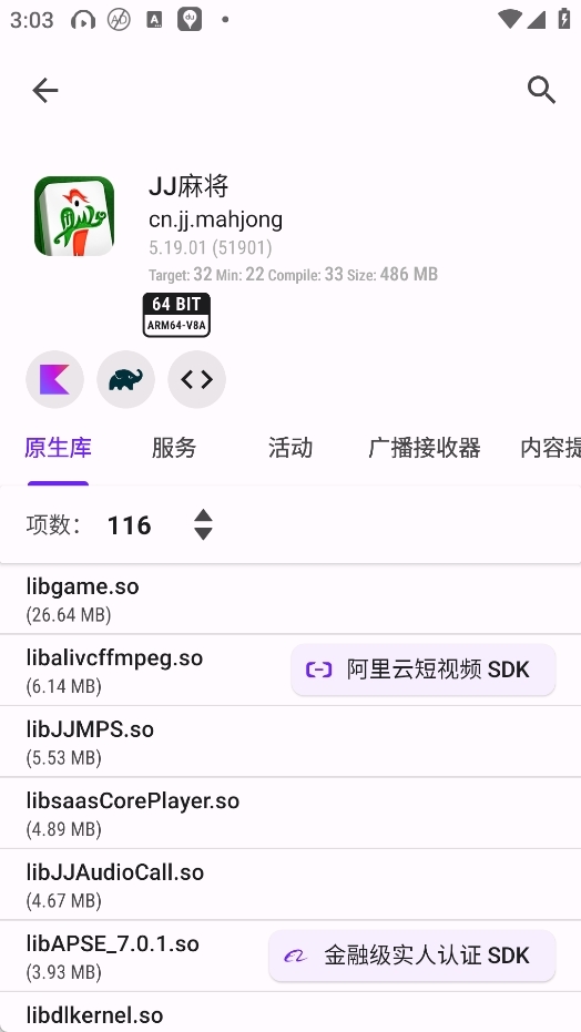 这款软件可查看应用所使用的原生库架构,涵盖无原生库、32位及64位支持等情况。通过饼状图能直观统计原生库的架构分布,方便开展数据分析。LibChecker还具备查看应用注册组件的功能,像服务、活动、广播接收器、内容提供器等都能查看。用户借此可以全面掌握每个应用的构成及依赖的库,进而为后续的测试与优化提供数据支撑。
