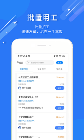 平台聚焦临时工与正式工的招聘及劳务外包服务,依托大数据技术助力超10万名蓝领工人和技工院校毕业生达成精准就业,同时为5000余家用工企业提供精准招工支持。企业能够在线完成招工全流程,雇主也可在线查看招工用工相关数据。平台对信息审核严格把关,坚决杜绝虚假招工信息的存在。
