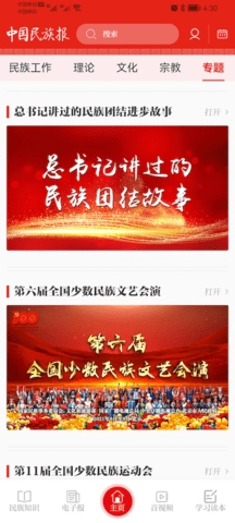 中国民族报是一款专注于民族领域的应用,其核心理念是铸牢中华民族共同体意识,围绕追踪热点新闻、展示工作成果、解读经典知识、传播中华文化、探讨前沿理论等方面开展报道与宣传工作。作为多元化的媒体平台,中国民族报致力于为读者提供丰富多元的资讯,以满足他们全面了解国内外相关事务的需求。