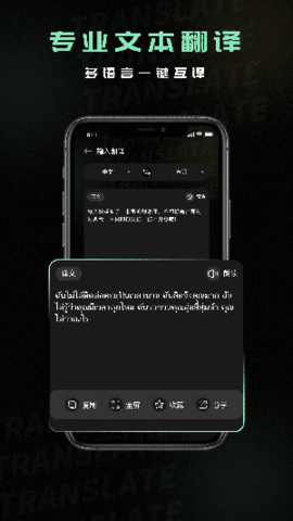 泰文翻译作为一款多功能翻译工具,致力于满足用户在泰语翻译领域的各类需求。无论是日常沟通、学术钻研还是商务往来,用户都能借助该软件实现高效的语言转换。软件支持泰语与多种主流语言的双向互译,保障用户在不同场景下都能获取适宜的翻译方案。其操作简便,用户仅需选定源语言和目标语言,输入待翻译文本,就能迅速得到翻译结果,大幅增强了翻译的便捷性与实用性。