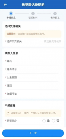 2:点击“无犯罪记录证明”
