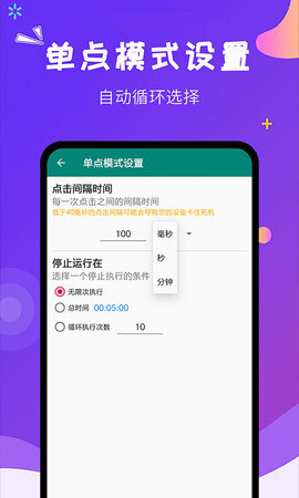 在自动点击工具的设置界面里找到“循环设置”这一选项,确认该循环设置功能处于开启状态。