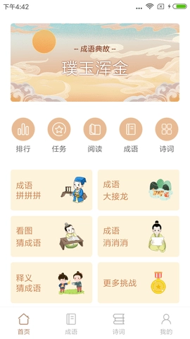 玩家能了解到每个成语的详细释义和出处背景,从而扩充自身的成语储备。这既是一种学习途径,也是一种娱乐形式。借助游戏来学习成语,能让学习过程更轻松有趣,提升学习的积极性。成语拼拼拼包含两种玩法:成语消消消与成语拼拼拼。在成语消消消里,玩家要从杂乱的汉字中逐个找出成语,当找出的成语满足要求时,就能将它们消除。这种玩法可以锻炼玩家的观察力和判断力,还能强化对成语的记忆。