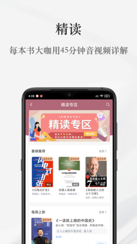 早晚读书平台设有精品课程板块,VIP会员可免费畅享400小时的各类优质课程,同时还能享受其他付费课程五折起的优惠福利。这些课程覆盖领域广泛,包括《人性的弱点》《习惯的力量》《学习之道》《所谓情商高,就是会说话》《被讨厌的勇气》等经典内容。用户通过学习这些课程,能够实现自我提升,将自身的弱点转化为优势,让曾经的软肋成为保护自己的盔甲。