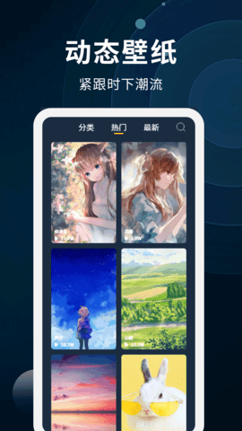 动态壁纸制作是一款实用的手机美化工具,它拥有海量的动态壁纸、动态锁屏与屏保壁纸资源,能让手机界面变得鲜活灵动。软件还提供高清及超高清画质的壁纸选项,大幅提升屏幕显示的清晰度。此外,它具备来电秀功能以及图片、视频发布功能,助力用户打造专属的个性化手机体验。锁屏壁纸作为核心功能之一,收录了精选的1080P超清壁纸,方便用户快速找到心仪的款式。无论你偏好风景、动物、动漫游戏还是明星人物主题,都能在这款软件中找到契合需求的壁纸。动态壁纸制作凭借丰富的功能,成为提升手机个性与视觉效果的优质选择。