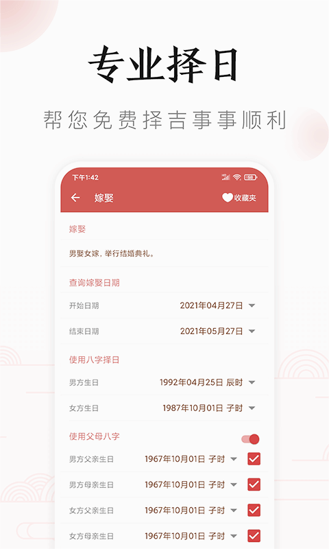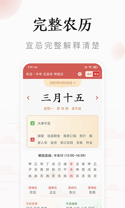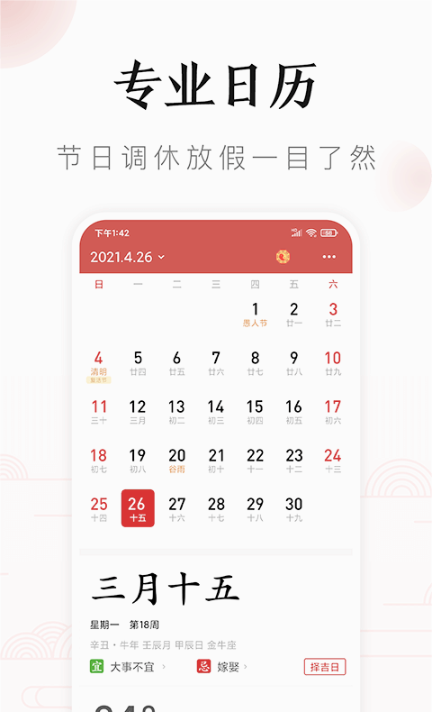 吉历万年历设有清晰的阳历与农历对照板块,能让用户便捷地查看节假日并规划调休安排。其黄历功能会详尽呈现每日的宜忌事项、吉神凶神方位等内容,助力用户在日常生活里做出更恰当的决策。而八字择日功能,则是根据个人的生辰八字来挑选适宜开展重要活动的日子,这种极具个性化的服务,让吉历万年历在众多同类软件中显得格外突出。