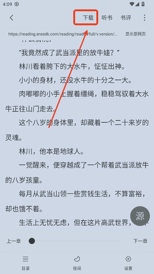 3、在阅读界面右上角找到“”图标,轻轻一点即可进入缓存设置选项。
