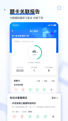建造师快题库不仅拥有丰富的试题资源与学习资料,还为考生配备了便捷的学习途径和专业的解析服务。平台具备题库、直播、评估报告三大核心功能,所有习题均严格依据考试大纲命制,知识体系与教材深度契合,同时收录了近五年的全部真题,涵盖章节练习、模拟试题、考前押题等多种练习形式,能够全方位满足用户的各类学习需求。