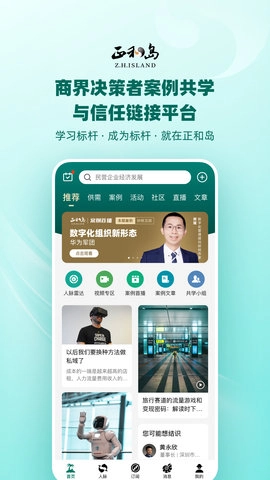 正和岛的在线服务触达超100万企业家、创业者及企业高管群体,同时依托微信公众号、视频号、第三方内容平台等构成的新媒体矩阵,为超过1100万主流商业人群提供服务。安装正和岛APP后,你便能加入这个圈层,与他们结伴前行,汲取其专业知识与实践经验。该平台由中国企业家俱乐部创始人、《中国企业家》杂志原社长刘东华先生发起创立,是一个以供需精准适配为核心价值的互联网创新服务平台,聚焦服务企业家与创业者群体。在这里,用户不仅能获得深度学习的契机,还能与其他企业家搭建商业合作纽带。