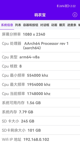 码农宝具备快速查看安卓设备信息的能力,借助它,你能便捷获取手机屏幕分辨率、型号、设备ID和可用内存等关键信息。这对开发人员而言颇具价值,他们可依据这些信息对软件进行调整与优化。除设备信息外,码农宝还拥有诸多其他功能,像列表、容器、对话框、动画、翻页、图表、编码和算法、多媒体、传感器以及实用工具等都包含在内。这些功能覆盖了开发流程的各个环节,不管你有何种功能需求,码农宝都能够满足。