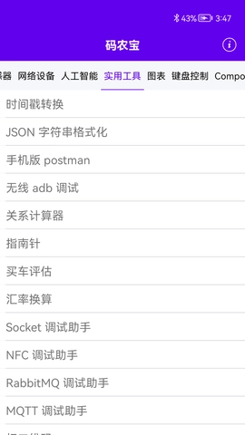 码农宝是一款实用性很强的编程辅助软件,能为开发人员提供各类常用代码及效果演示。不管开发人员处于何种开发环节,码农宝都能给予助力。传感器功能是码农宝的又一突出优势,它包含了多种传感器的示例与应用场景。无论是要使用加速度传感器、陀螺仪,还是光线传感器,借助码农宝都能轻松达成相关功能的实现。此外,码农宝还配备了一系列实用工具,像单位转换器、计算器、颜色选择器等都在其中,这些工具能够帮助开发人员更高效地完成各项工作任务。