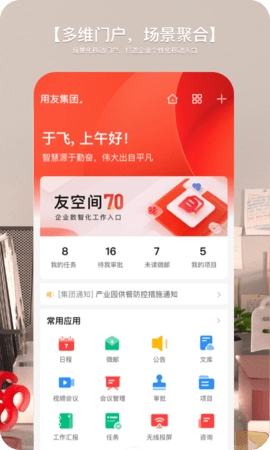 友空间是一款聚焦人的移动办公应用,旨在助力企业与个人拓展并维护社会化商务关系,加速企业的社会化转型进程。借助友空间,用户能够在更广泛开放的企业商务社交网络里开展沟通、协作、交易等社会化商业活动。它配备了实时沟通、协同工具、社会化商务功能等一系列服务,帮助用户更高效地推进工作与业务,提升工作效率和质量。同时,友空间重视用户的个性化体验与需求,通过个性化推荐和定制化服务,满足不同用户的需求与偏好。