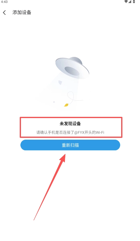 4、如果提示为发现设备,请检查手机是否连接了@FYX开头的Wi-Fi。