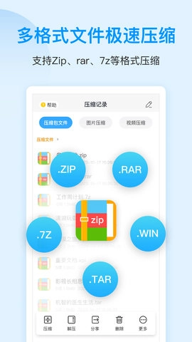 压缩文件查看器是一款功能完备、操作简单的压缩与解压缩工具。它兼容Zip、7z、RAR等多种格式的文件解压,几乎能打开所有常见的压缩包文档。同时,它拥有强大的文件管理功能,可协助用户更高效地管理和整理文件。该软件支持从相册导入照片,并能在线预览图片,为用户处理图片提供了便利。此外,它还具备多种文件分享功能,用户既可以通过短信、邮件等途径分享文件,也能在其他应用中打开文件,有效提升了文件的共享与使用效率。